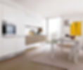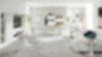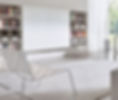 Nuove geometrie rigorose per una casa luminosa: librerie sospese Link System abbinate alla cucina Laclip.